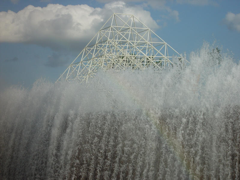 Pyramid and waterfall